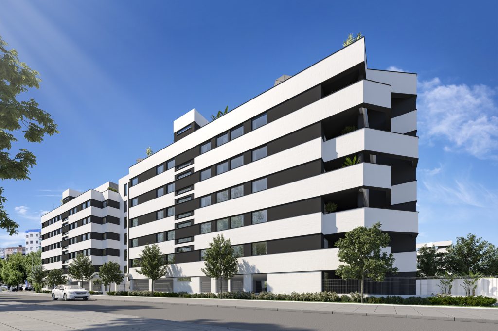 Edificio de 61 viviendas en bloque, garaje y piscina. Fachadas de ladrillo perforado con revestimiento de mortero de cemento y ladrillo cara vista. Tabiquería interior de yeso laminado. Carpintería exterior de aluminio monoblock lacado con rotura de puente térmico o de PVC. Puerta blindada en acceso a vivienda de hoja lisa, en madera. Sistema para producción de ACS y calefacción mediante aerotermia. Climatización mediante suelo radiante y refrescante. Preinstalación para fancoil en salón. Preinstalación para carga de vehículos eléctricos en garaje. Piscina vallada, gimnasio equipado con máquinas, zona infantil y zonas comunes ajardinadas.